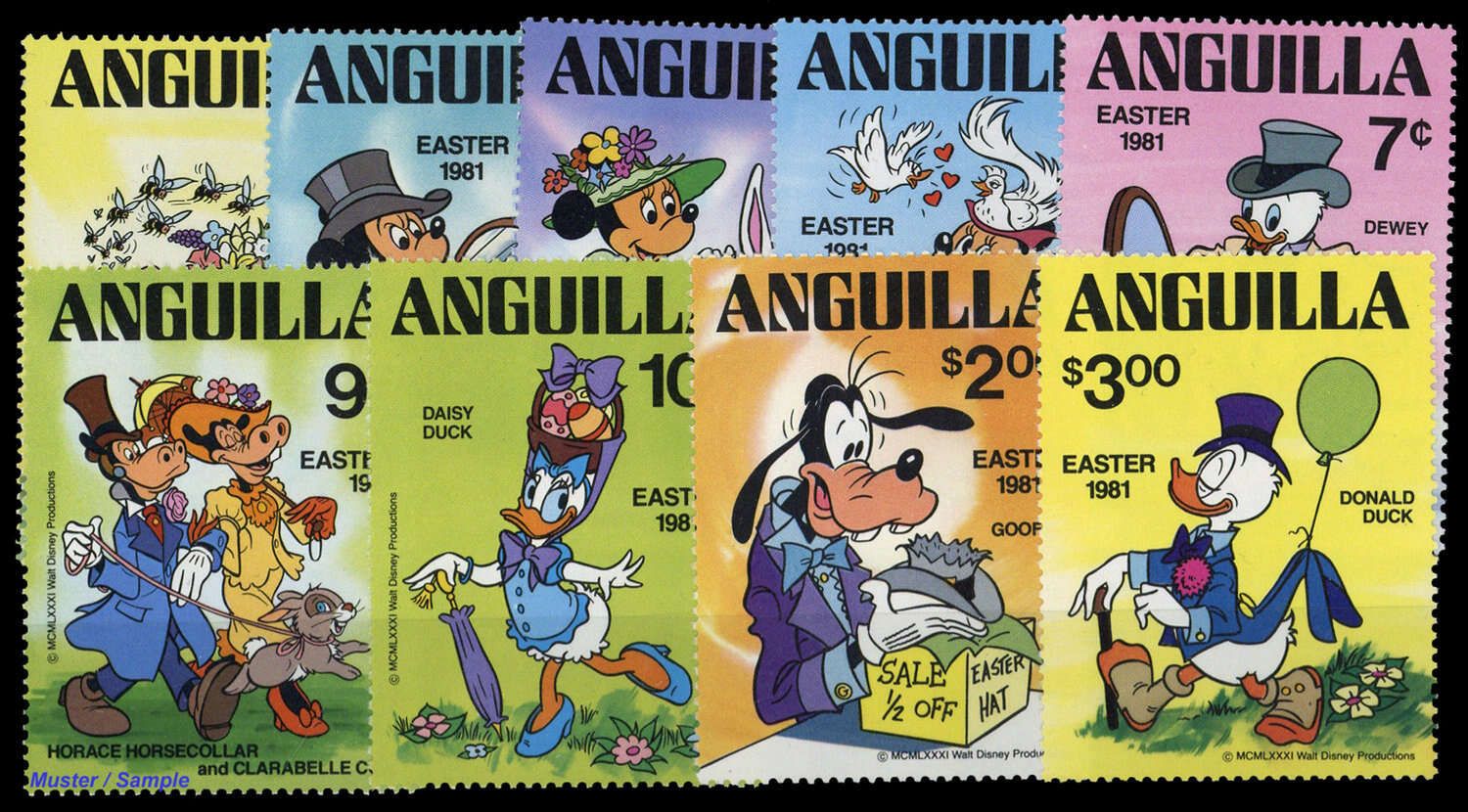 1981, 9 Werte Ostern: Walt-Disney-Figuren komplett in postfrischer Erhaltung