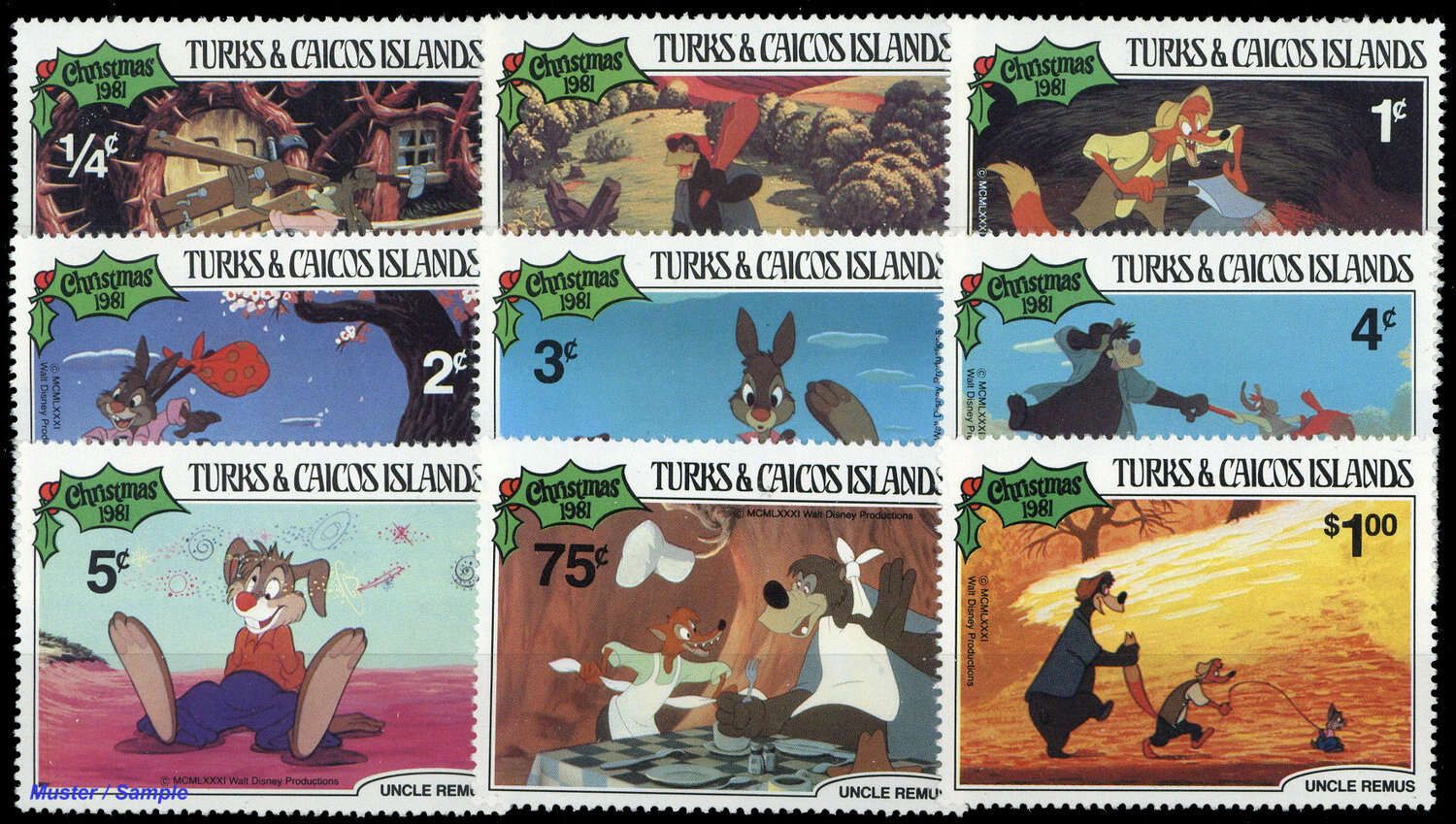 1981, 9 Werte Weihnachten Walt-Disney-Figuren komplett in postfrischer Erhaltung