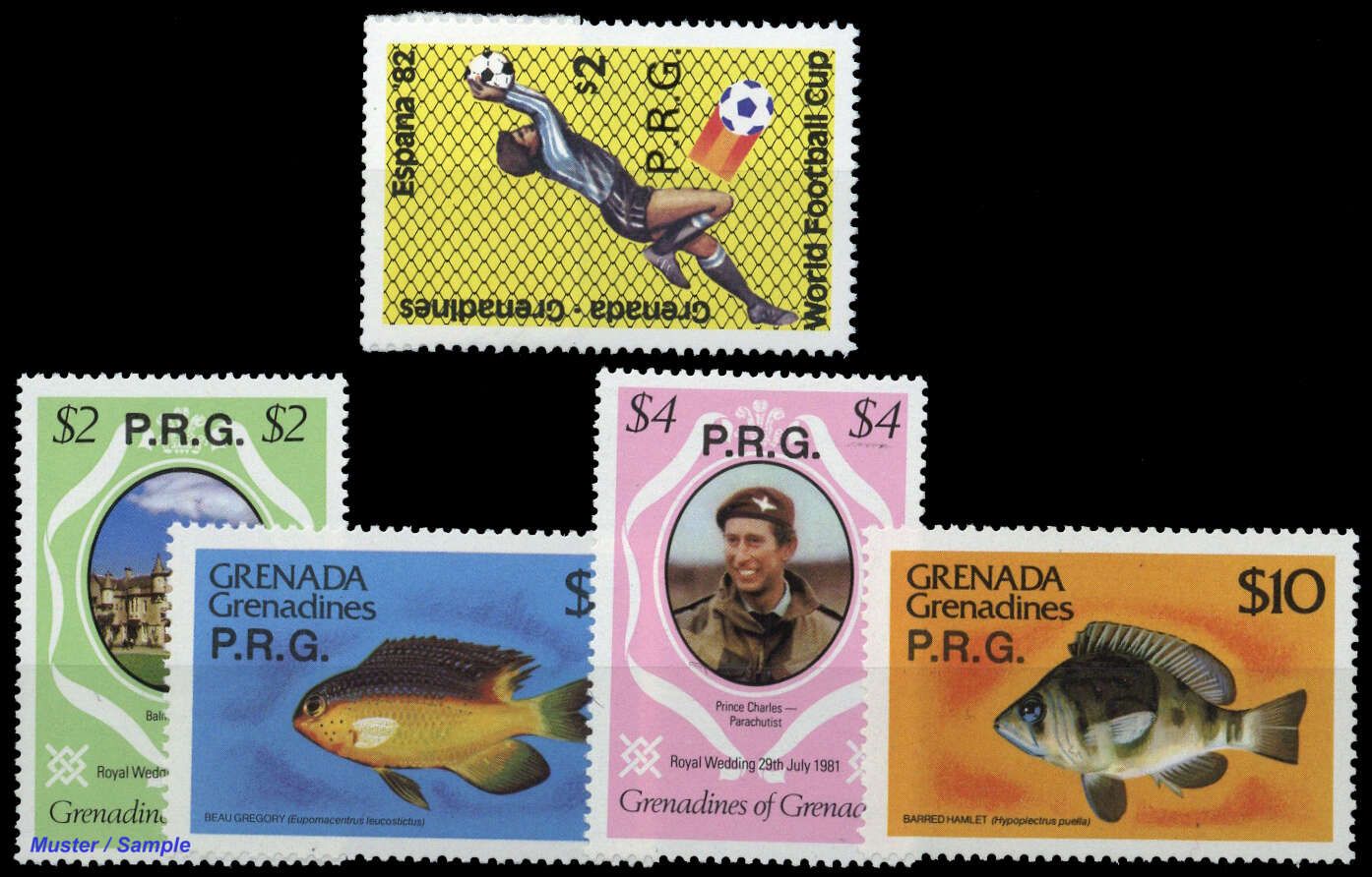 1982, 5 Werte "Fische, Hochzeit, Fussball" in postfrischer Erhaltung (ME 25.-)