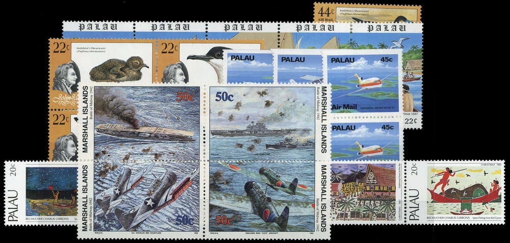 1983/89, 5 postfrische Ausgaben, Nr. 24-28 Fünferstreifen, 65-69 mit Viererblock, 211-15 Fünferstreifen, 278-80 D (zwei Paare) und 426-29 Vierreblock (ME 25,-)