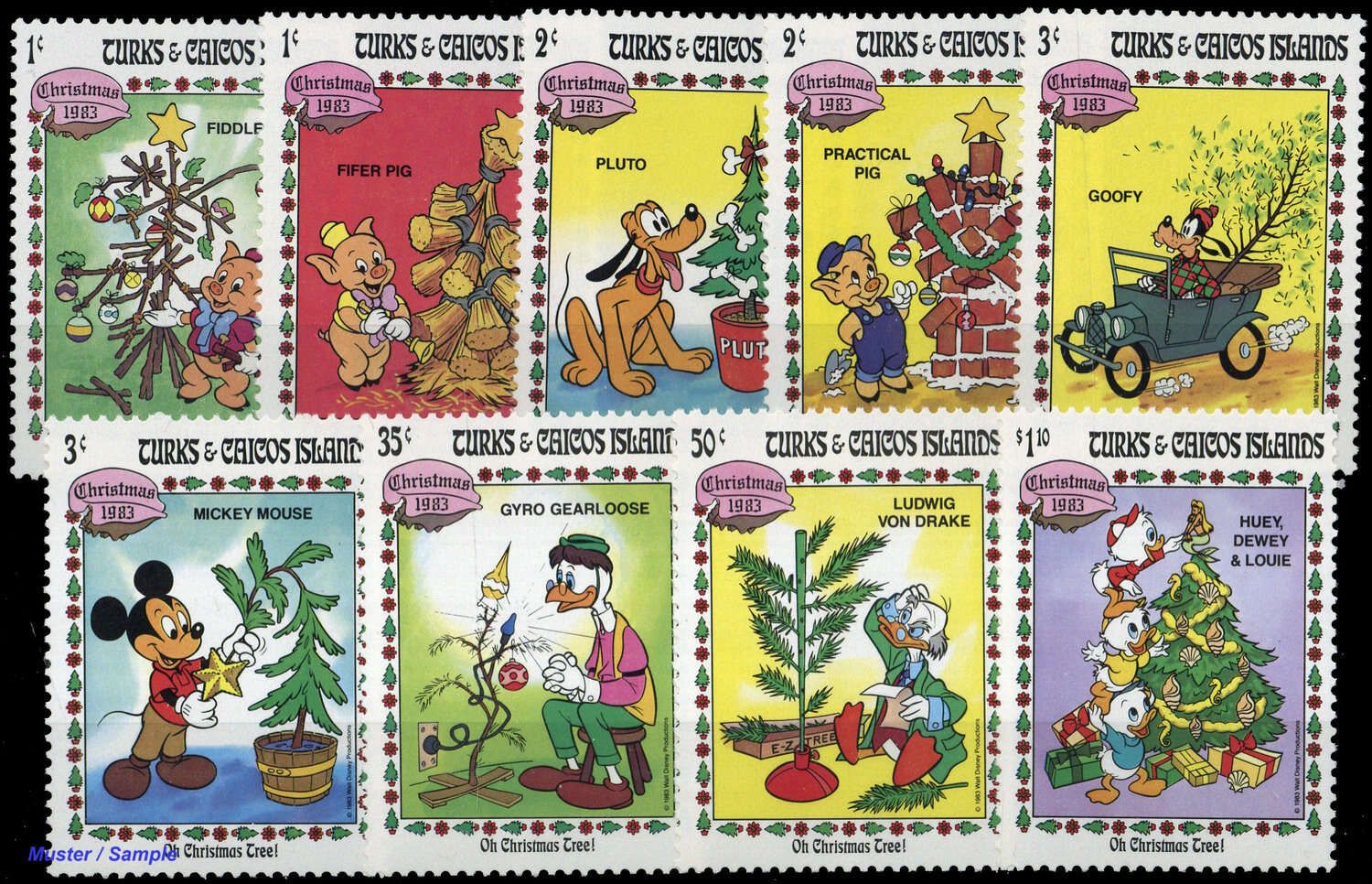 1983, 9 Werte Weihnachten Walt-Disney-Figuren komplett in postfrischer Erhaltung