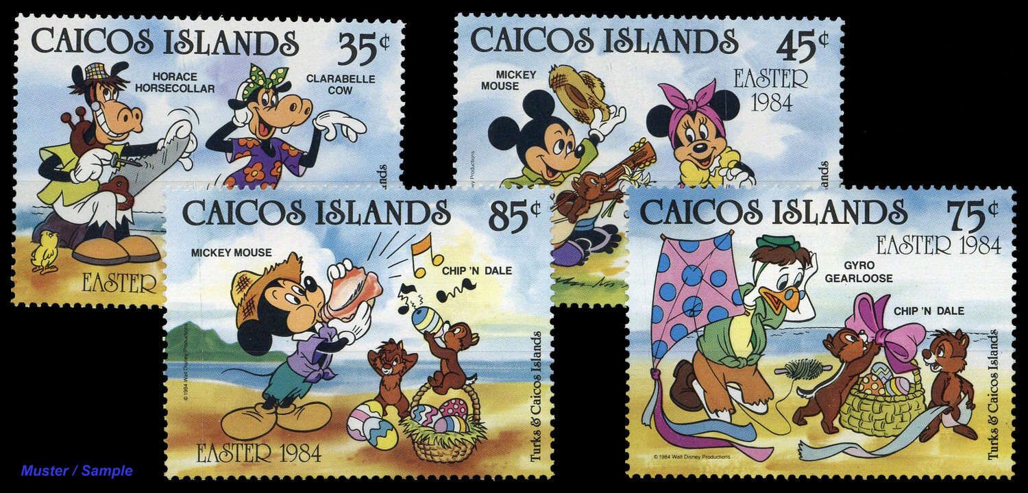 1984, 4 Werte Ostern Walt-Disney-Figuren komplett in postfrischer Erhaltung