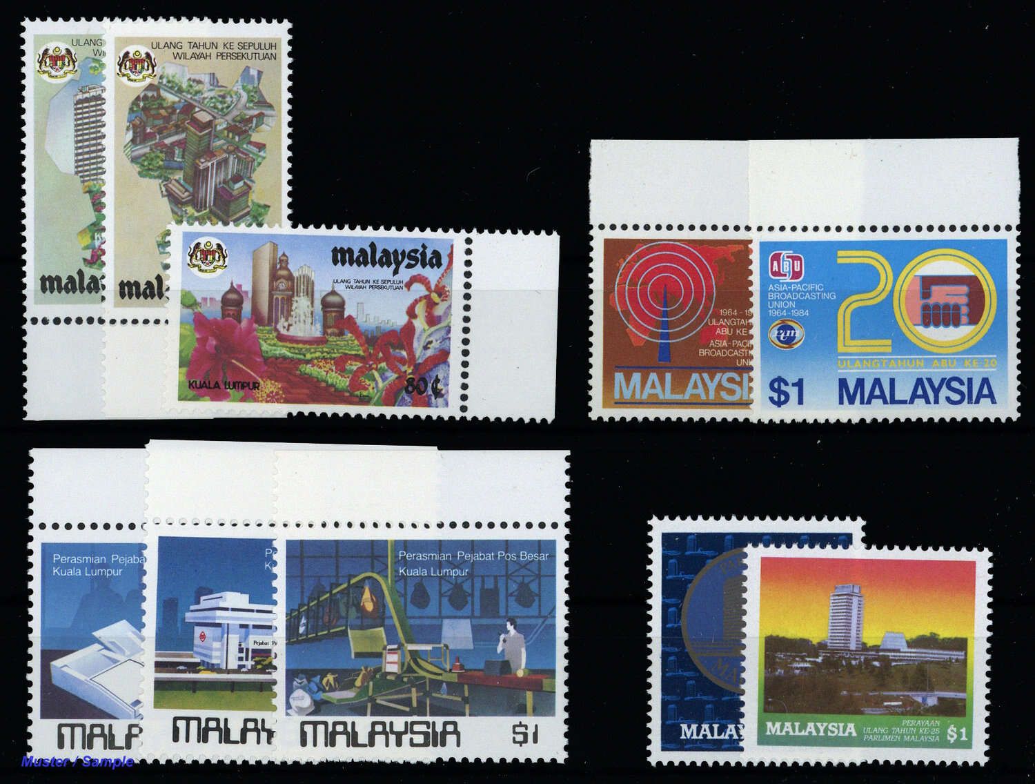 1984, 4 Ausgaben postfrisch: MiNr.275-77, 284-85, 286-88 und 297-98 (ME 22.-)