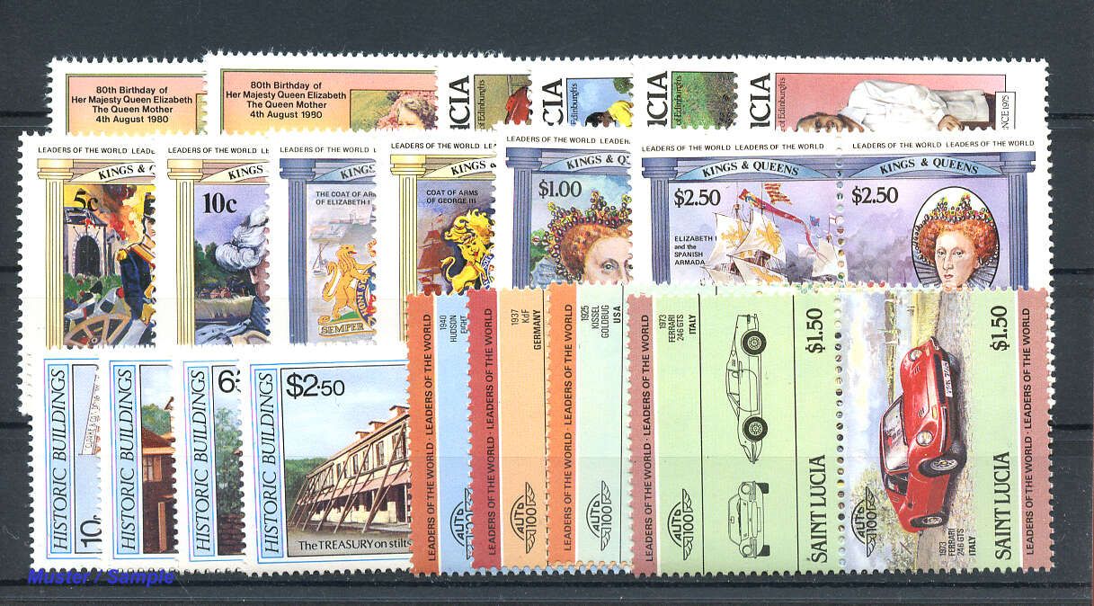 1984, kompletter Satz Monarchen sowie zusätzlich 4 weitere Sätze alle postfrisch. MiNr. 499-00,550-53,632-43,644-47 und 740-47