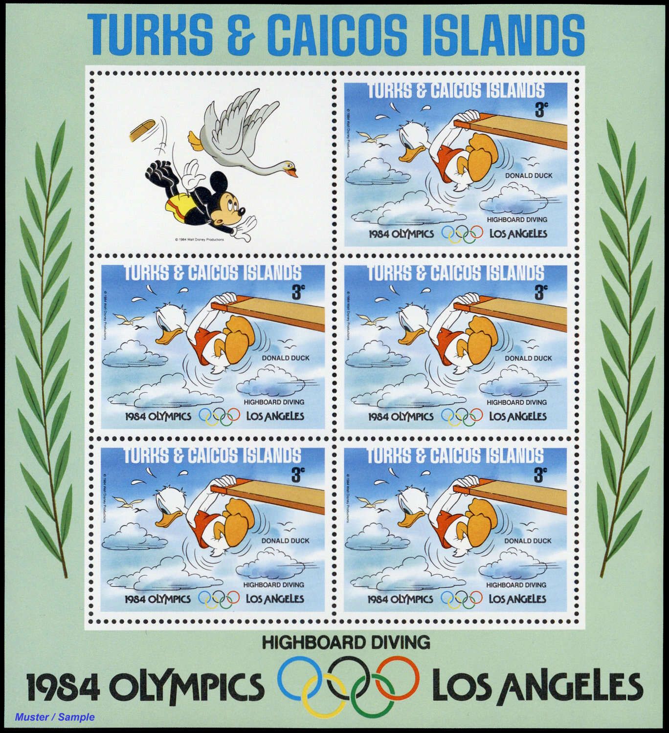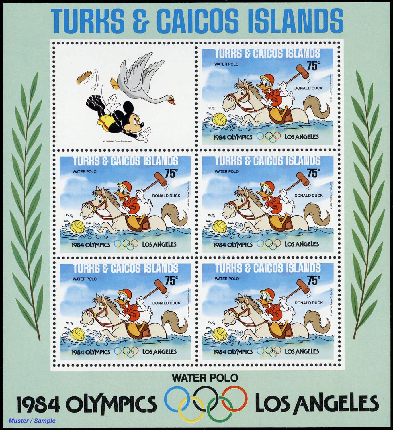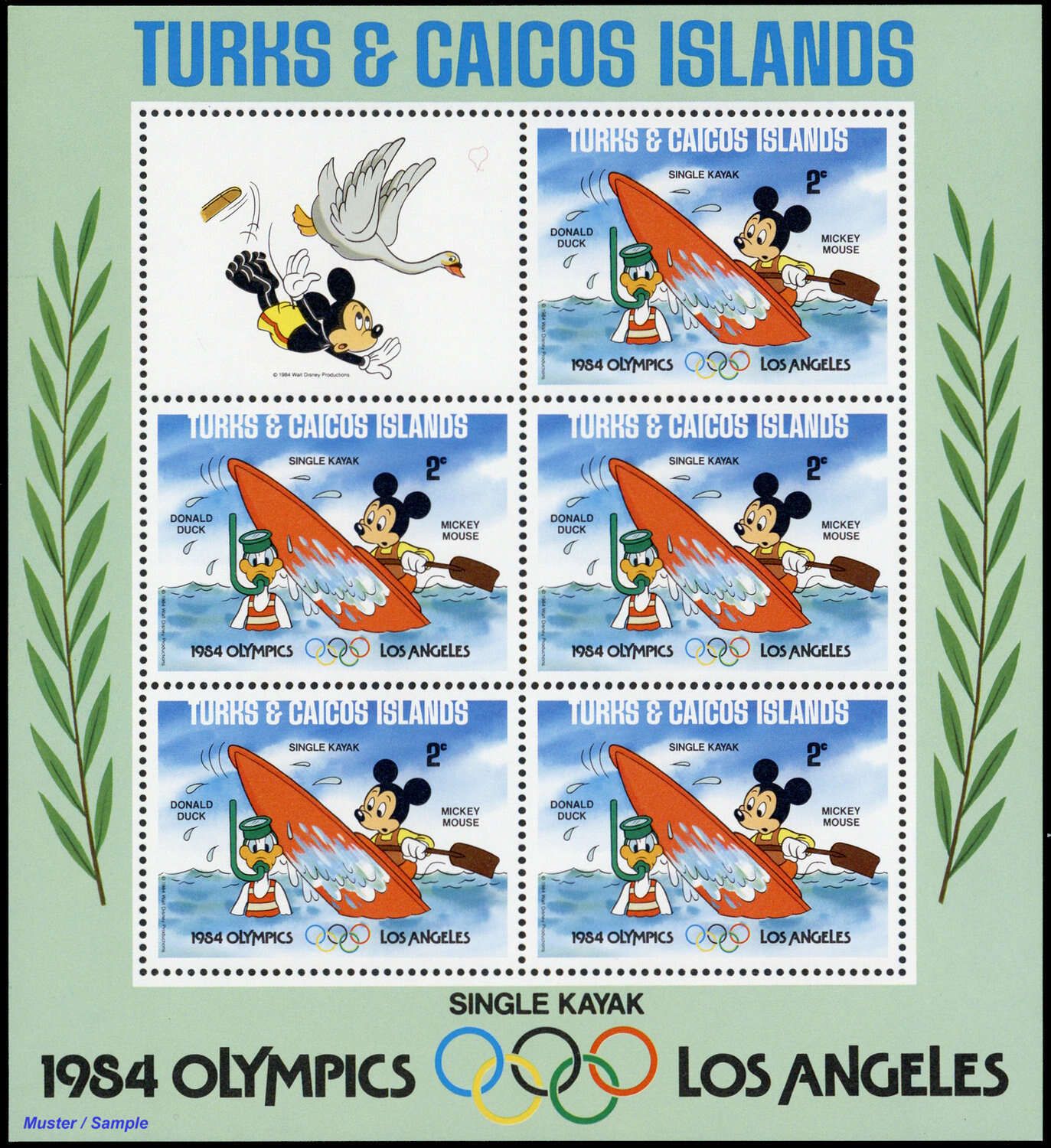1984, 9 Kleinbogen Olympische Sommerspiele, Los Angeles: Walt-Disney-Figuren in der Type "C II" mit insgesamt 5 Sätzen in postfrischer Erhaltung