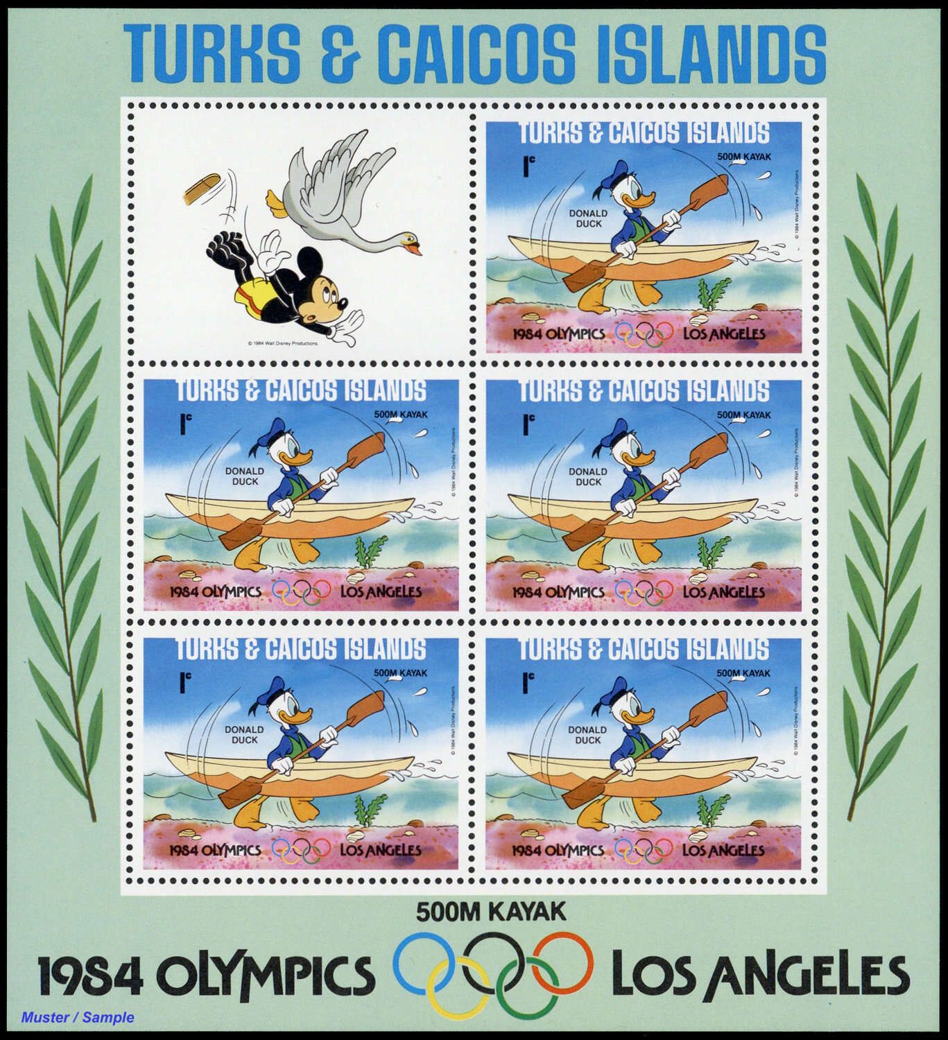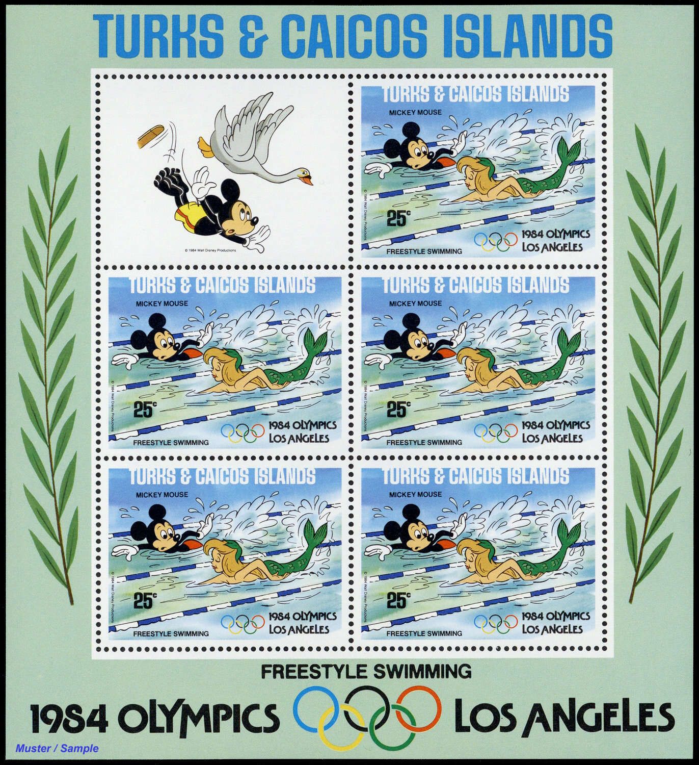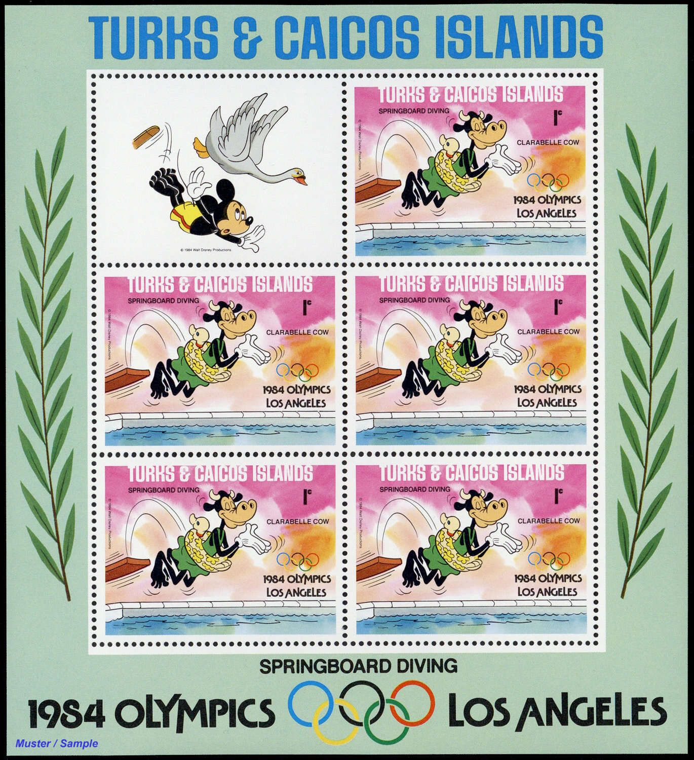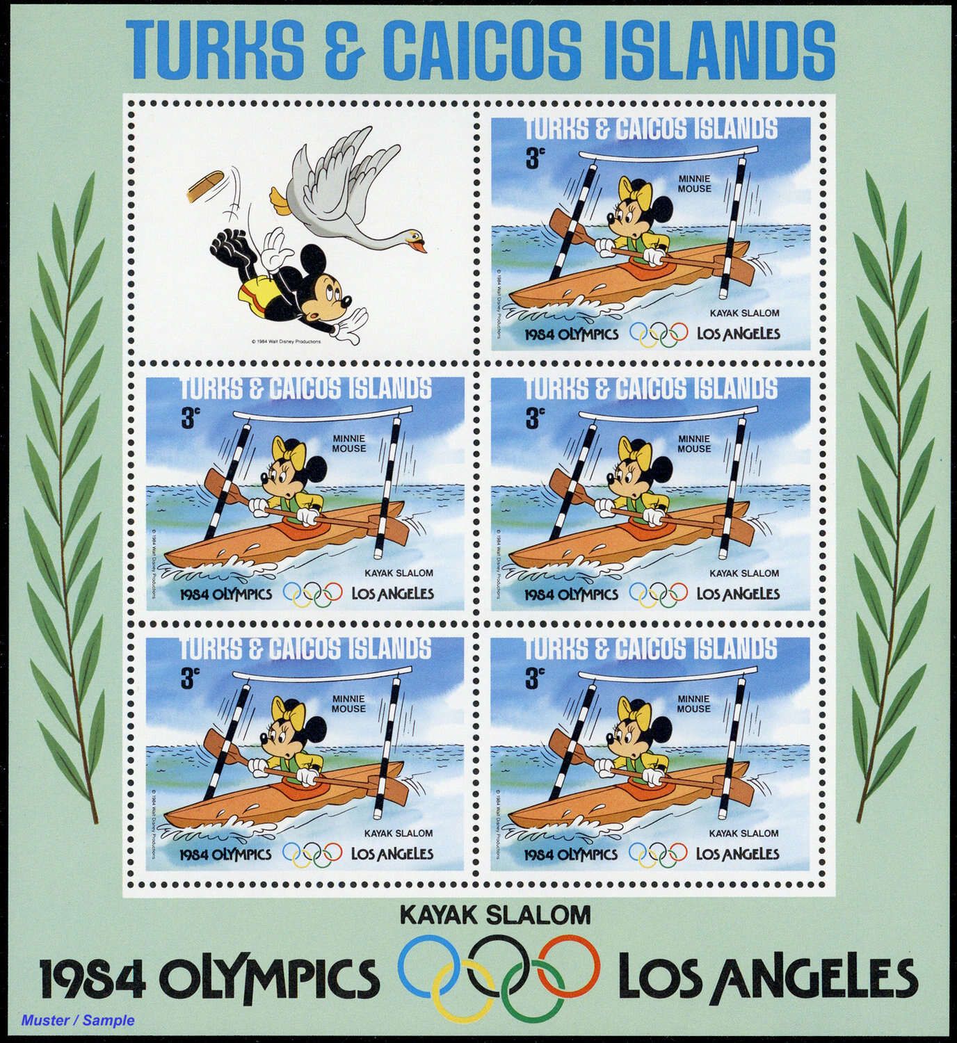 1984, 9 Kleinbogen Olympische Sommerspiele, Los Angeles: Walt-Disney-Figuren in der Type "C II" mit insgesamt 5 Sätzen in postfrischer Erhaltung