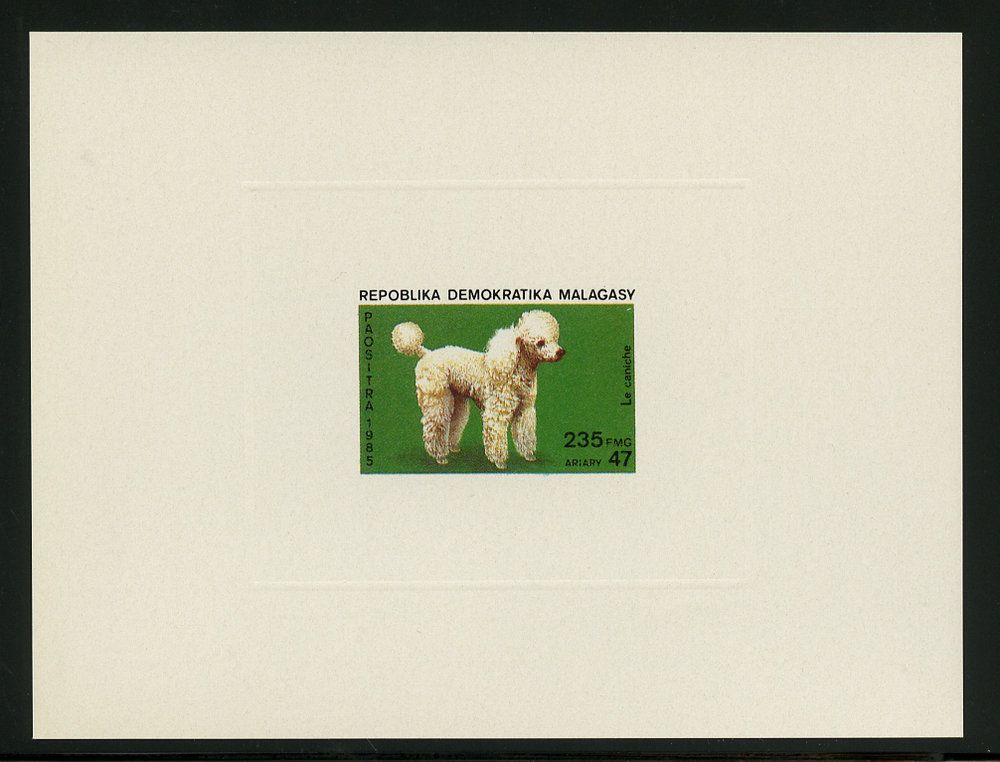 1985, Madagaskar, 235 Fr. Pudel als Sonderblock in der Größe 120x90 mm