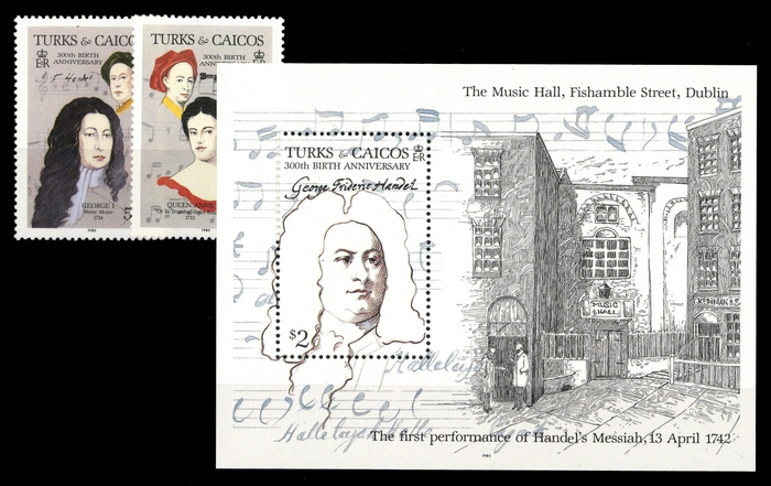 1985, Georg Friedrich Händel, Nr. 749-50 aus Satz und Block 60 je postfrisch (ME 18,-)