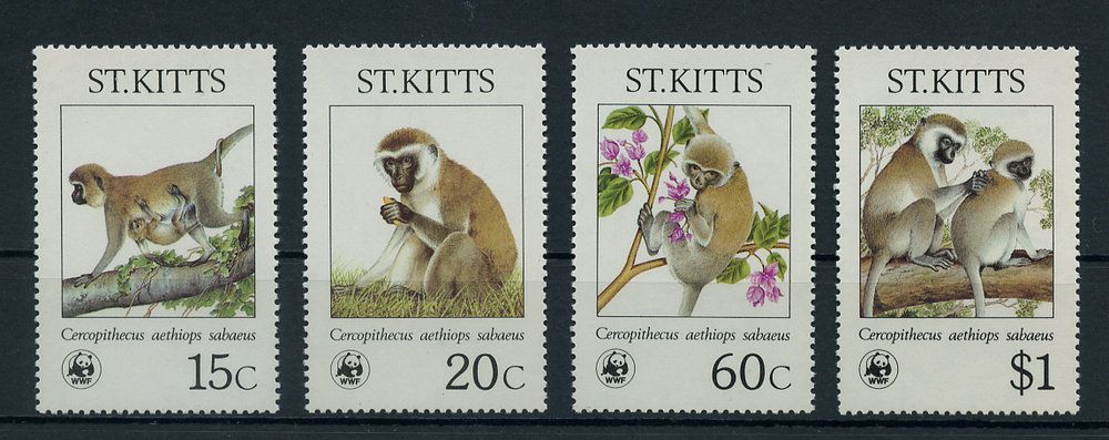 1986, 4 Werte WWF Meerkatzen postfrisch