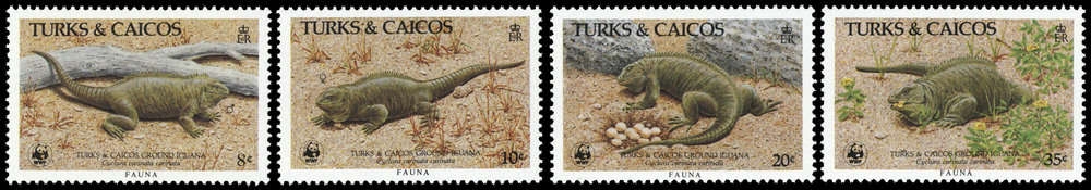 1986, 4 Werte Turks-und-Caicos-Leguan von den Turks und Caicos Inseln als kompletter postfrischer WWF Satz