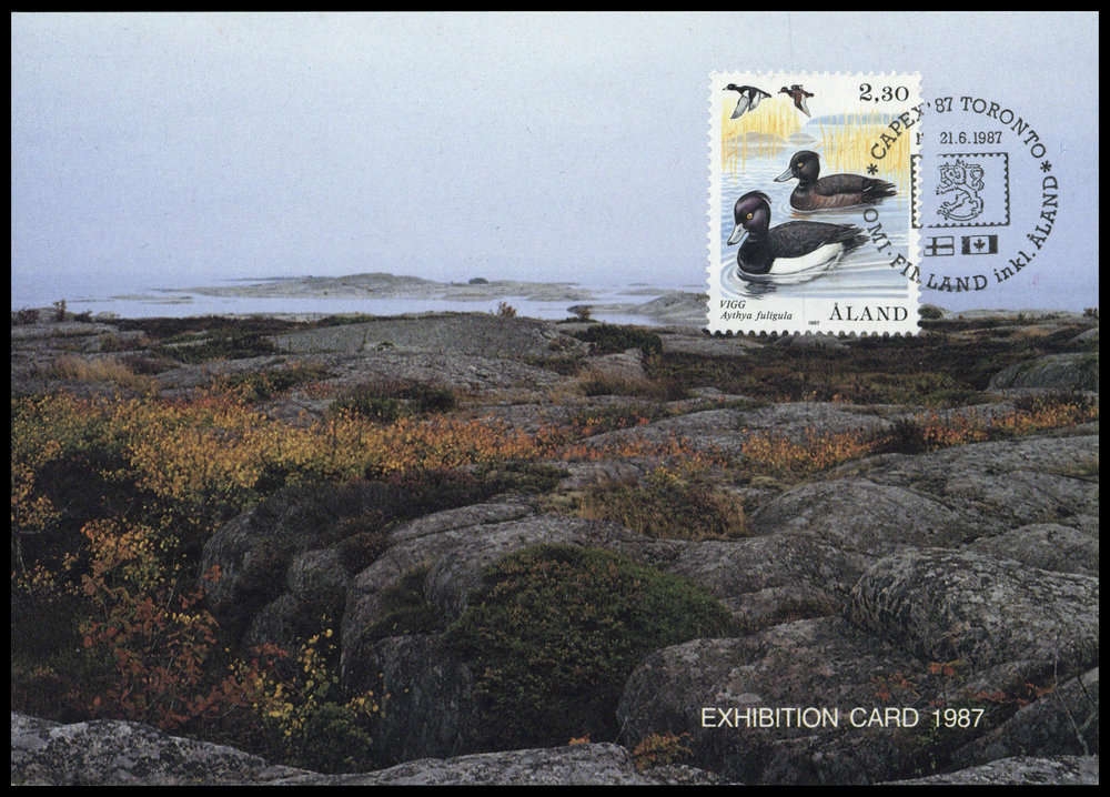 1987, Ausstellungskarte mit 2.30 Mk. Enten und SST "Capex Toronto 21.6.87"
