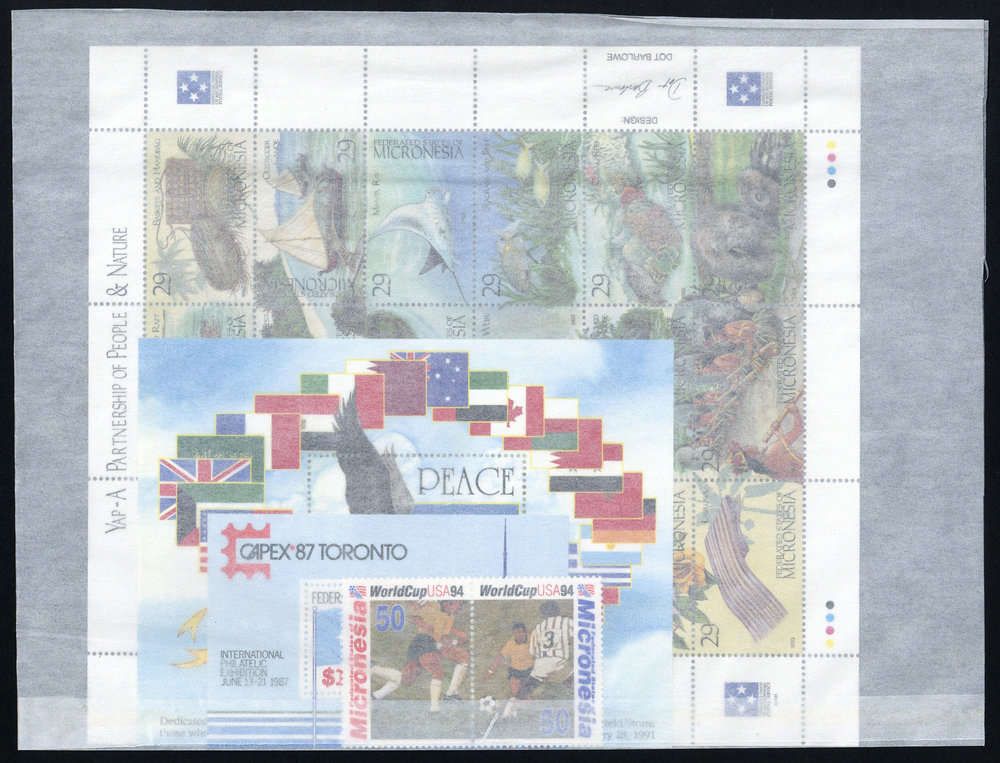 1987, 4 postfrische Ausgaben, MiNr.Block 1+9,319-36 als ZD-Bogen und 369-70 im Paar (ME 24.-)