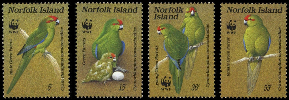 1987, 4 Werte Laufsittich von den Norfolk-Inseln als kompletter postfrischer WWF Satz