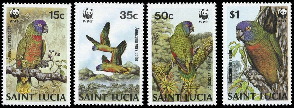 1987, 4 Werte Blaustirnamazone aus St. Lucia als kompletter postfrischer WWF Satz, Auflage nur 168.000
