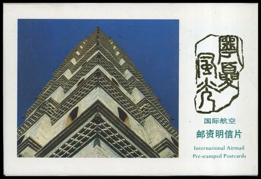 1990, ca., 130 F Luftpost-Bild-Postkarten (10 verschiedene Motive Landscapes of Ningxia im grünen Umschlag) ungebraucht