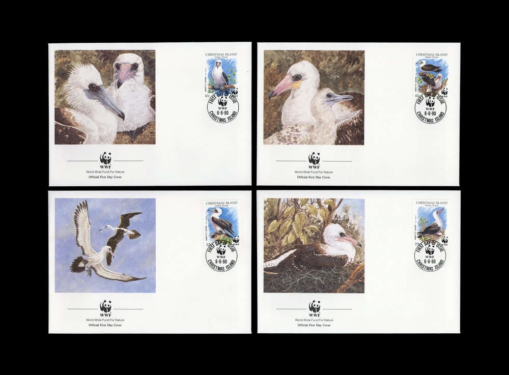 1990, 4 Werte Vögel von den Weihnachtsinseln jeweils auf attraktivem WWF Ersttagsbrief mit Graufusstölpel, Auflage nur 190.000