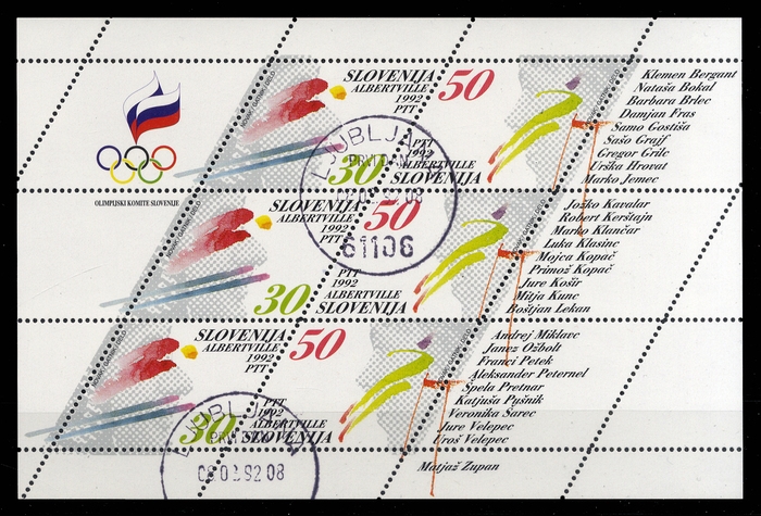 1992, Olympische Winterspiele als gestempelter Kleinbogen (ME 24.-)