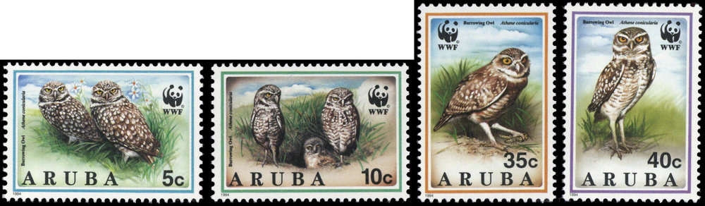 1994, 4 Werte Kaninchenkauz aus Aruba als kompletter postfrischer WWF Satz