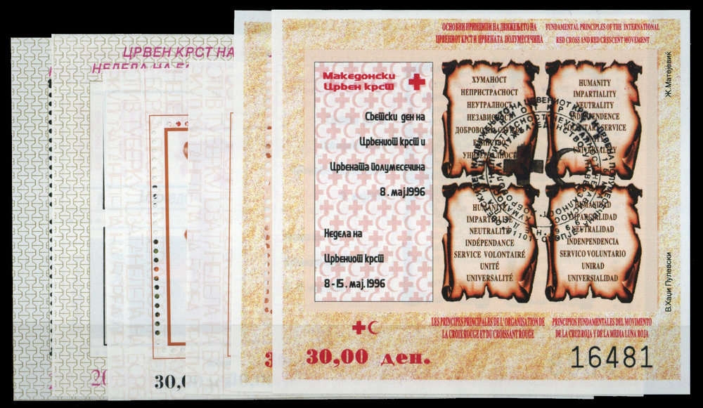 1994/96, 6 versch. gestempelte Blockausgaben, Block 10 A+B, 16 A+B und 19 A+B (ME 24,-)