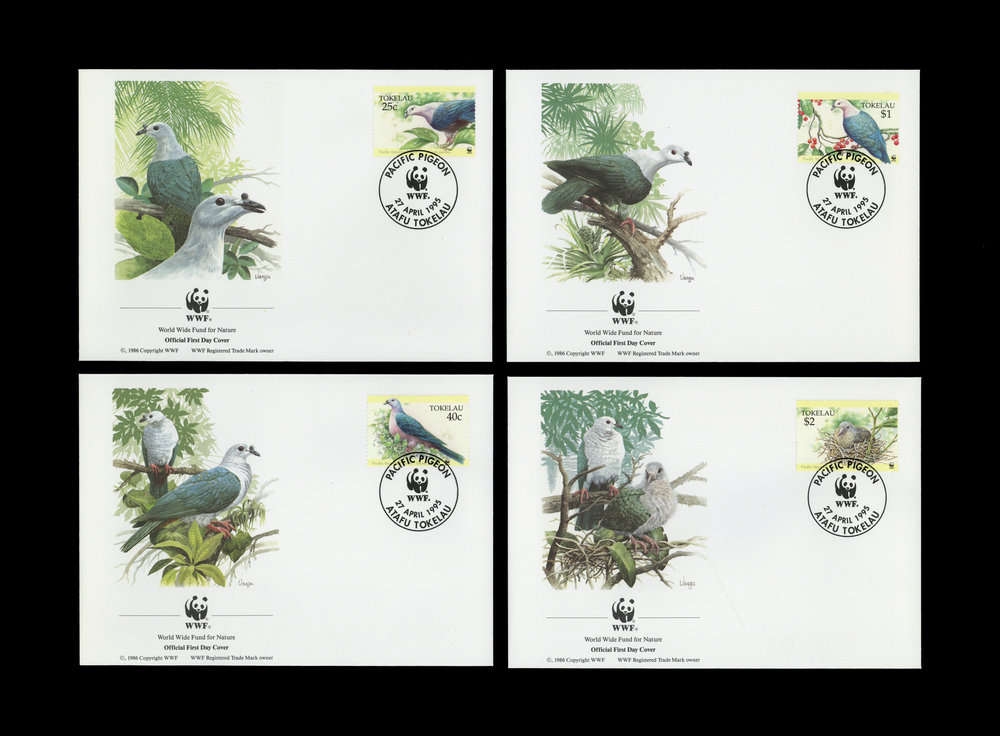 1995, 4 Werte Pazifikfruchttaube von den Tokelau Inseln jeweils auf attraktivem WWF Ersttagsbrief, Auflage nur 150.000