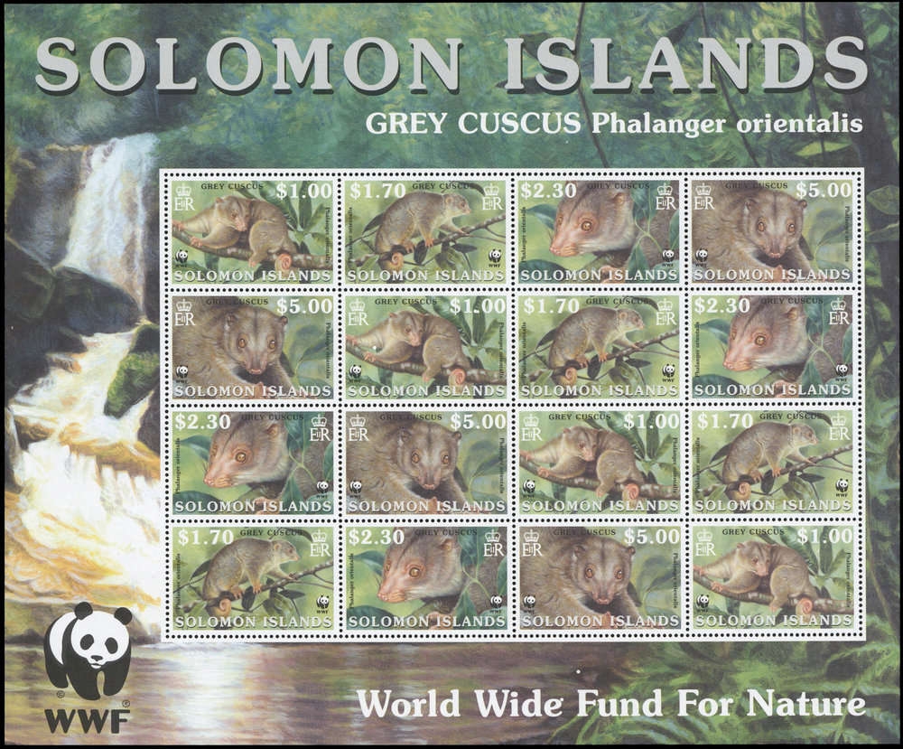 2002, 4 Werte Nördlicher Wollkuskus von den Salomoninseln als postfrischer WWF-Zusammendruck- Kleinbogen mit insgesamt 4 kompletten Sätzen