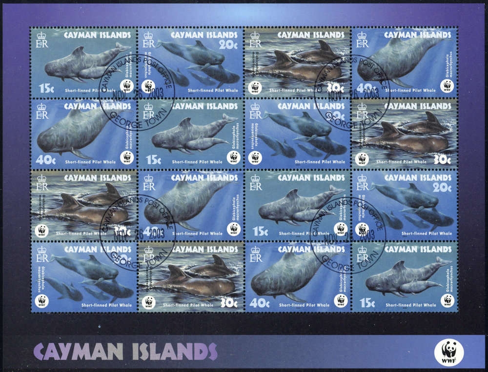 2003, 4 Werte Kurzflossen-Grindwale als WWF-Zusammendruck- Kleinbogen mit insgesamt 4 kompletten Sätzen und Ersttags- Sonderstempel