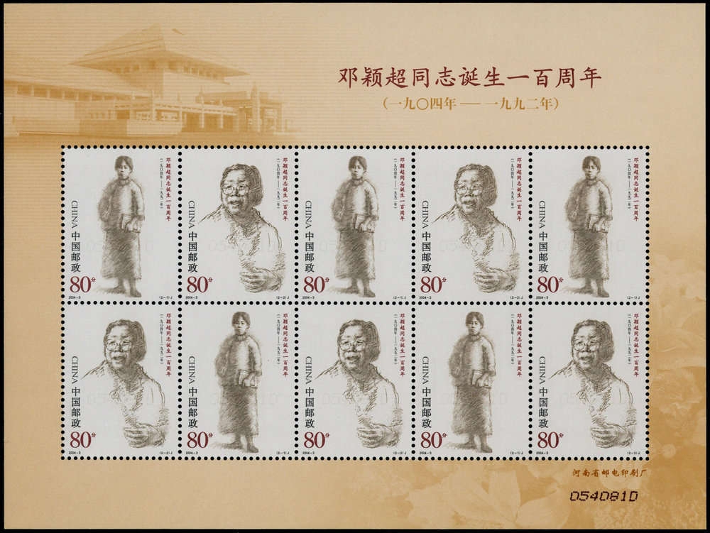 2004, 2 Werte 100. Geburtstag von Deng Yingchao aus der Volksrepublik China als postfrischer Zusammendruck- Kleinbogen mit insgesamt 5 kompletten Sätzen