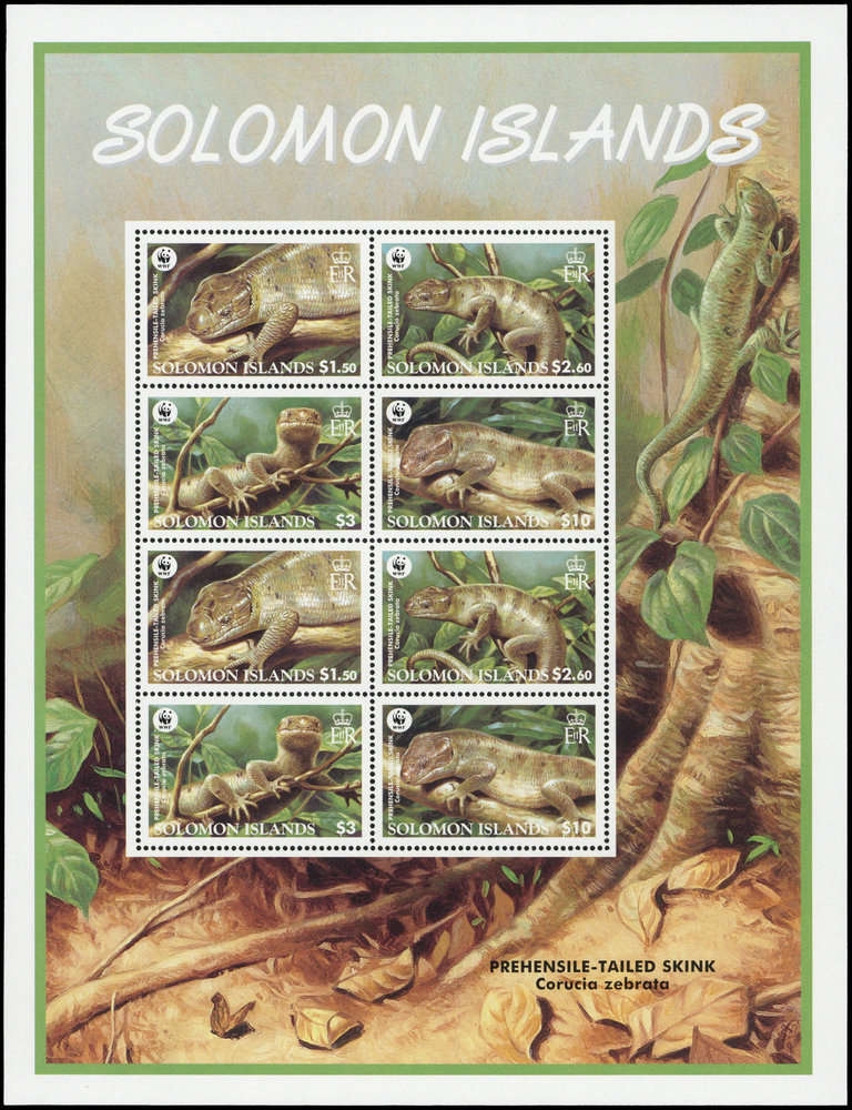 2005, 4 Werte Wickelschwanzskink von den Salomoninseln als postfrischer WWF-Zusammendruck- Kleinbogen mit insgesamt 2 kompletten Sätzen