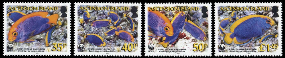 2007, 4 Werte Ascension Zwergkaiserfisch aus Ascension als kompletter postfrischer WWF Satz