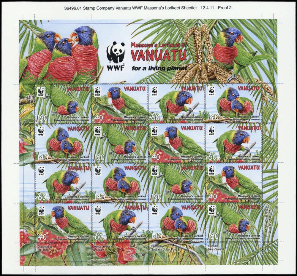 2011, 4 Werte WWF "Massena- Allfarblori" als Zusammendruck- Kleinbogen mit insgesamt 4 Sätzen als Vorlage- Proof auf Cromalin ähnlichem Papier im Gesamtformat 222x206mm. Dieser Proof wurde vor dem Druck erstellt, um einen farbverbindlichen Probedruck zu erhalten. Daher existieren von diesen Proofs meistens nur ein paar Stück!