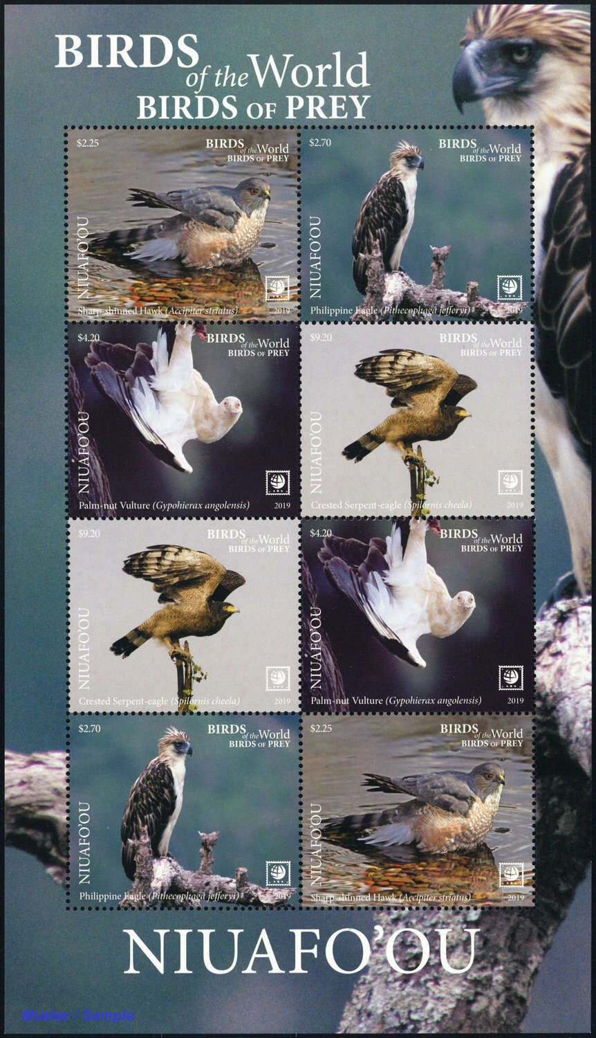 2019, Kleinbogen Greifvögel (II) (Eckschwanzsperber, Philippinenadler, Palmgeier und Schlangenweihe) mit insgesamt 2 Sätzen in postfrischer Erhaltung