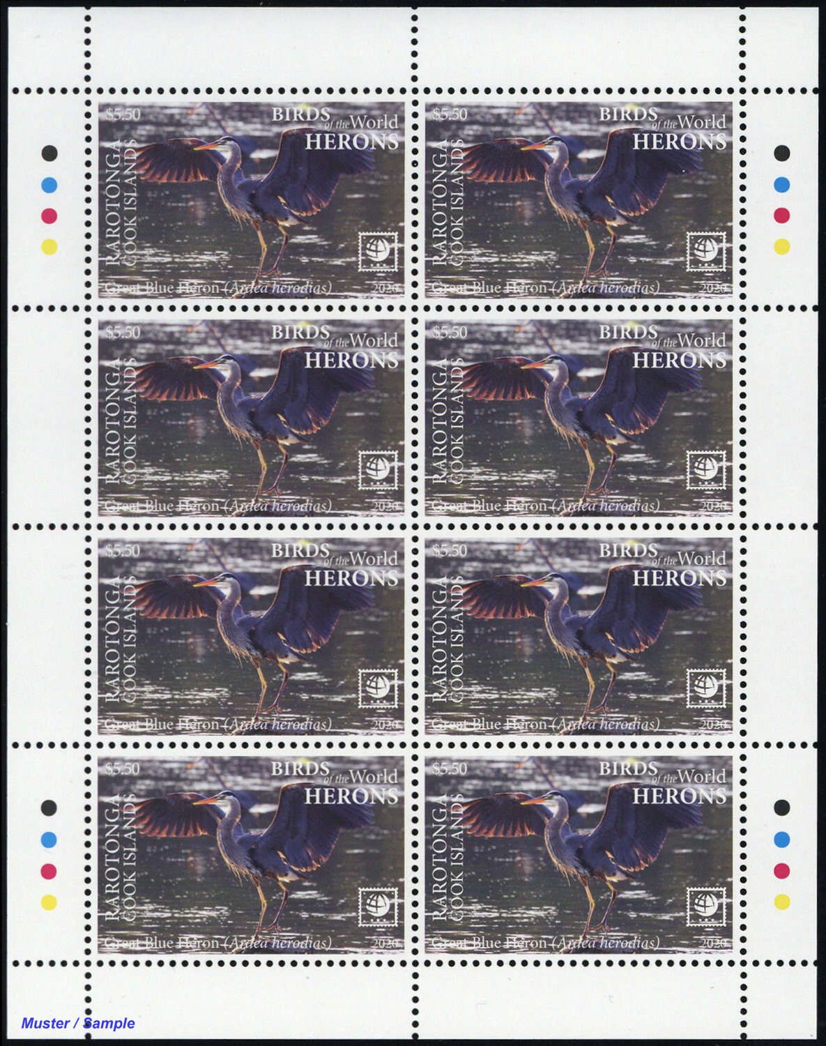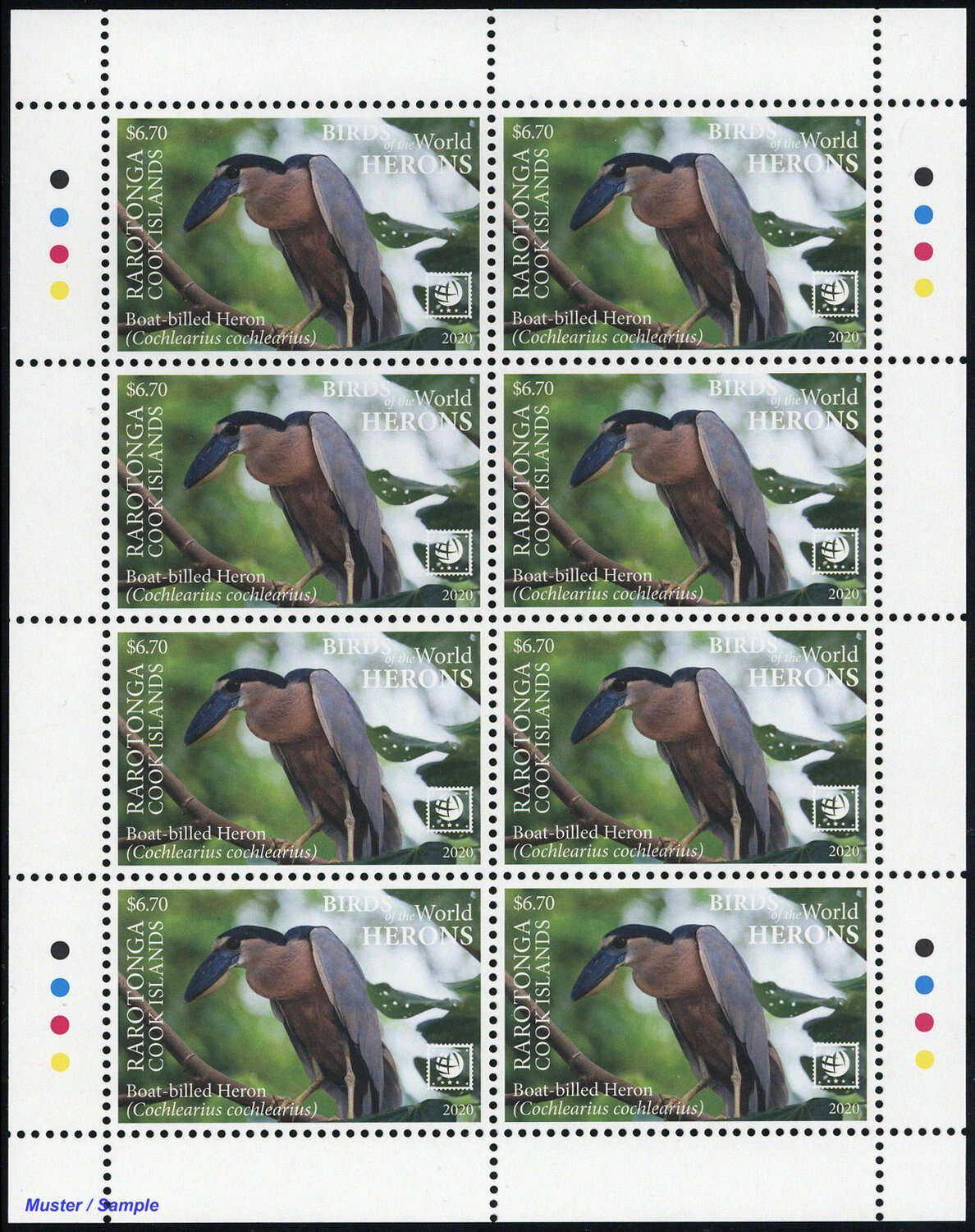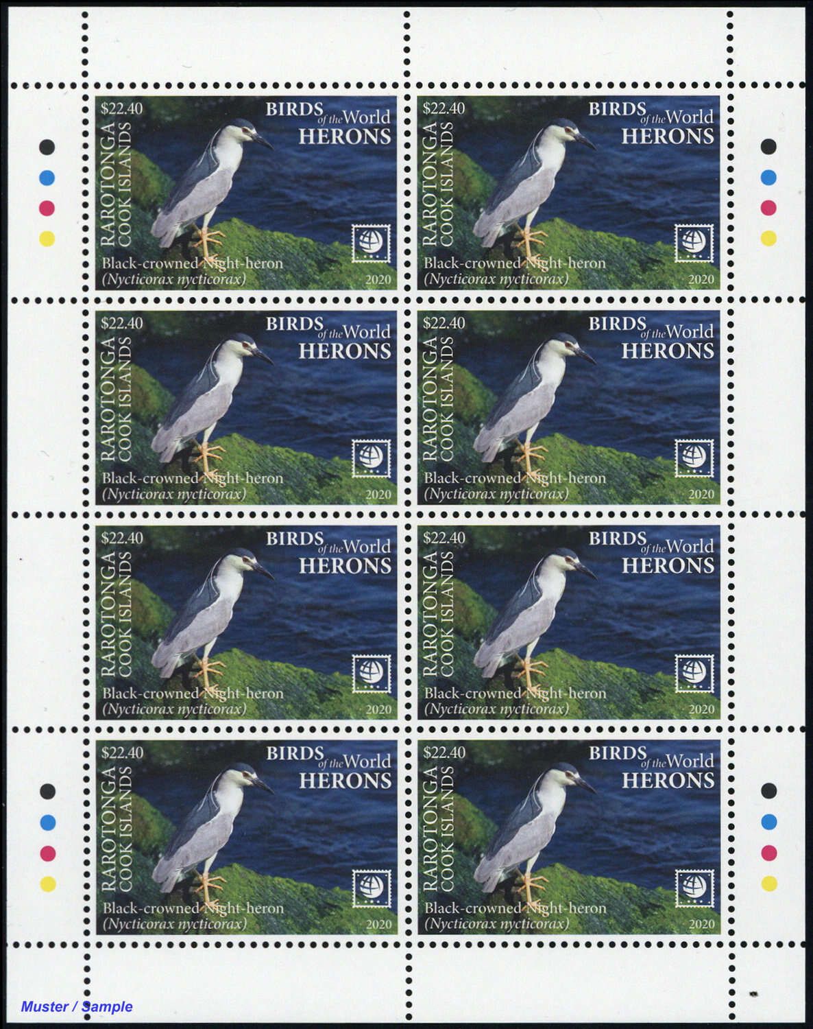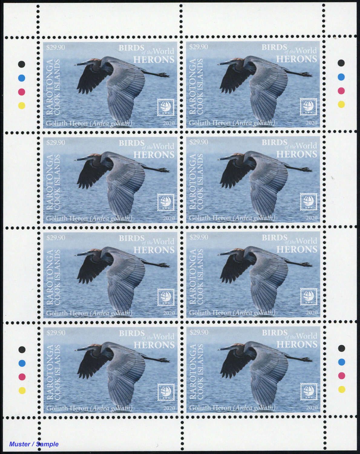 2020, 4 Kleinbogen Reiher (Kanadareiher, Kahnschnabel, Nachtreiher und Goliathreiher) mit insgesamt 8 Sätzen in postfrischer Erhaltung