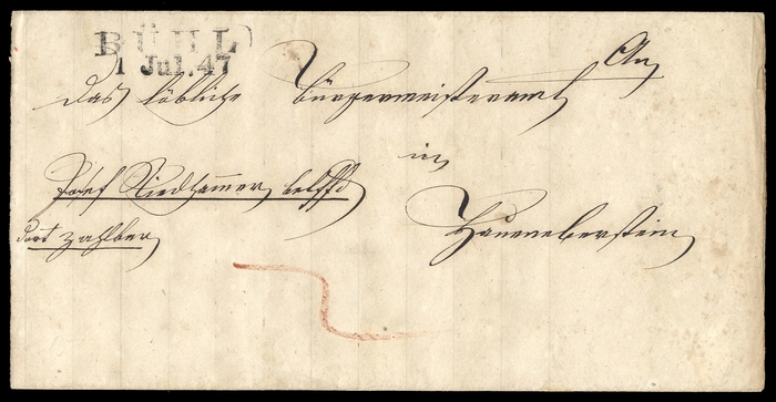 "BÜHL 1.Jul.47" L2 auf Teilbrief, Alterungsspuren