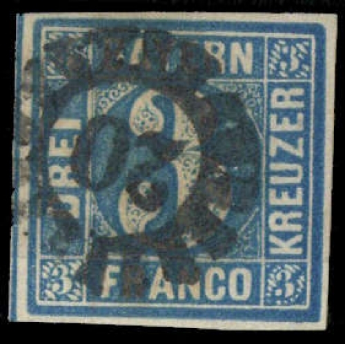 "20", klar kopfstehend auf vollrandiger 3 Kr. blau