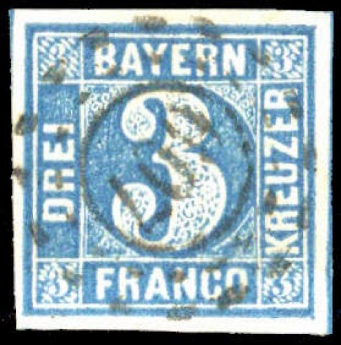 "607", klar fast kopfstehend auf vollrandiger 3 Kr. blau