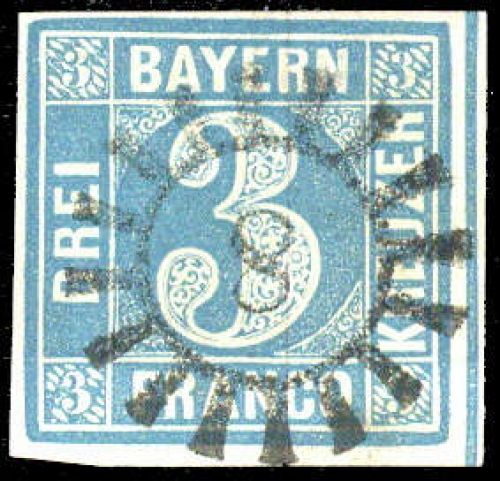 "8", klar kopfstehend auf vollrandiger 3 Kr. blau
