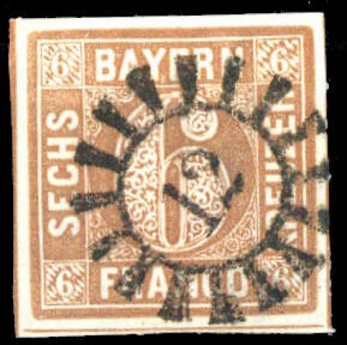 "12", klar auf vollrandiger 6 Kr. braun, helle Stellen
