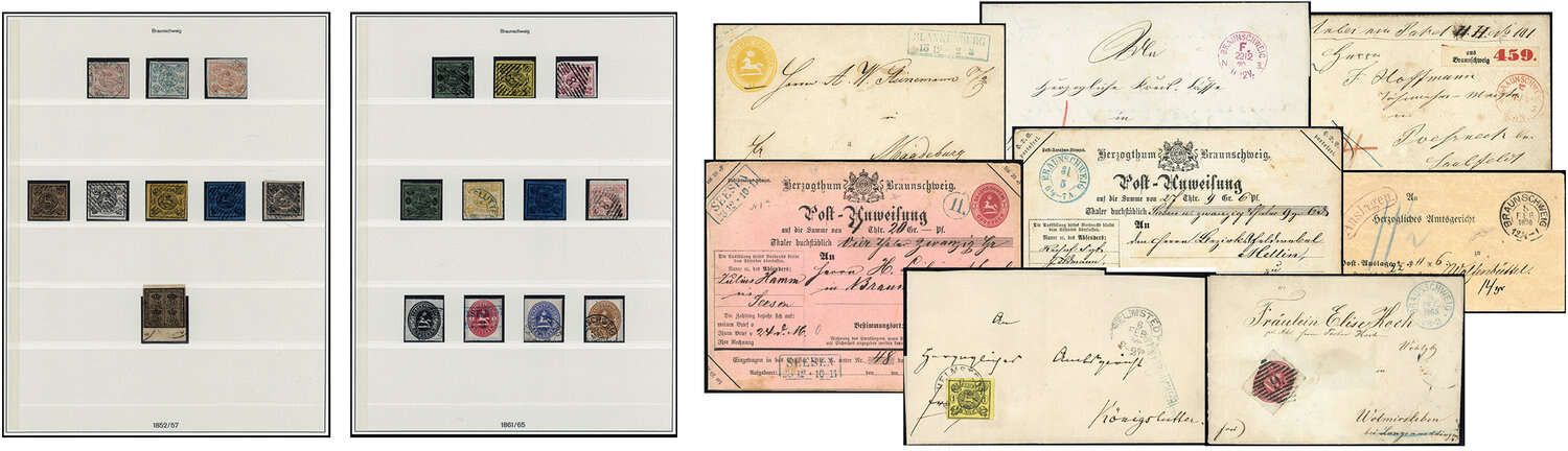ALTDEUTSCHLAND BRAUNSCHWEIG: Nach Hauptnummern komplette Sammlung gestempelt in unterschiedlicher Erhaltung im Lindner- Vordruck. Die Sammlung wurde noch mit 8 Belegen ausgeschmückt !