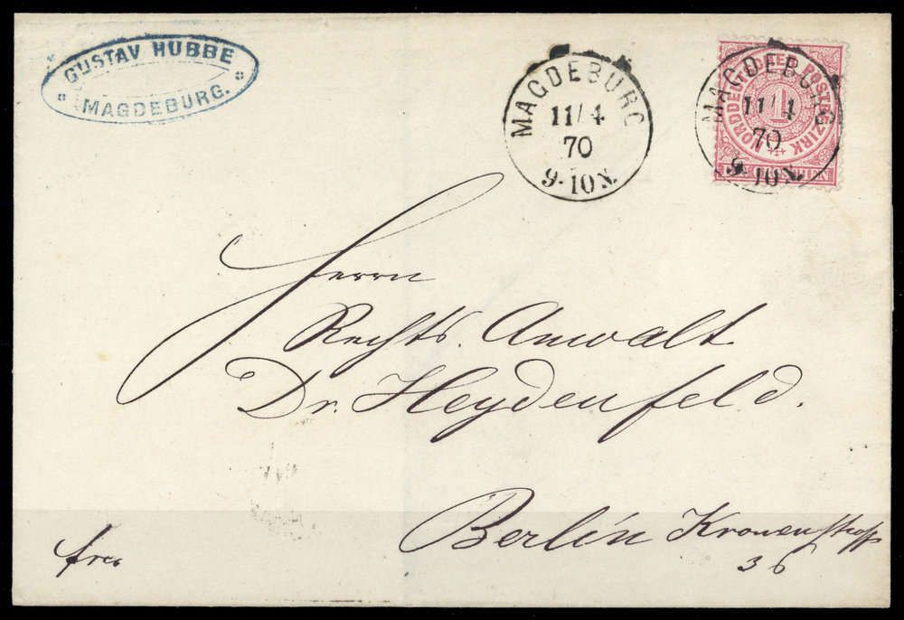 "MAGDEBURG 11/4 70", deutlicher K1 auf 1 Gr karmin, sowie beigesetzt, Brief nach Berlin