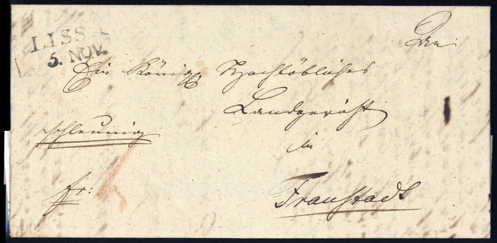 "LISSA 5.NOV. (1825)", L2 auf Siegelbrief mit Inhalt, Beförderungs- Altersspuren, nach Fraustadt