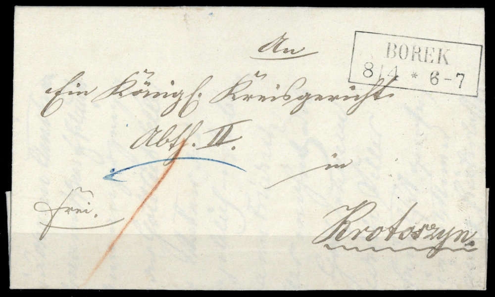 "BOREK 8/4 (1853)", klarer Ra2 auf Amtsbrief mit Inhalt, nach Krotoszyn