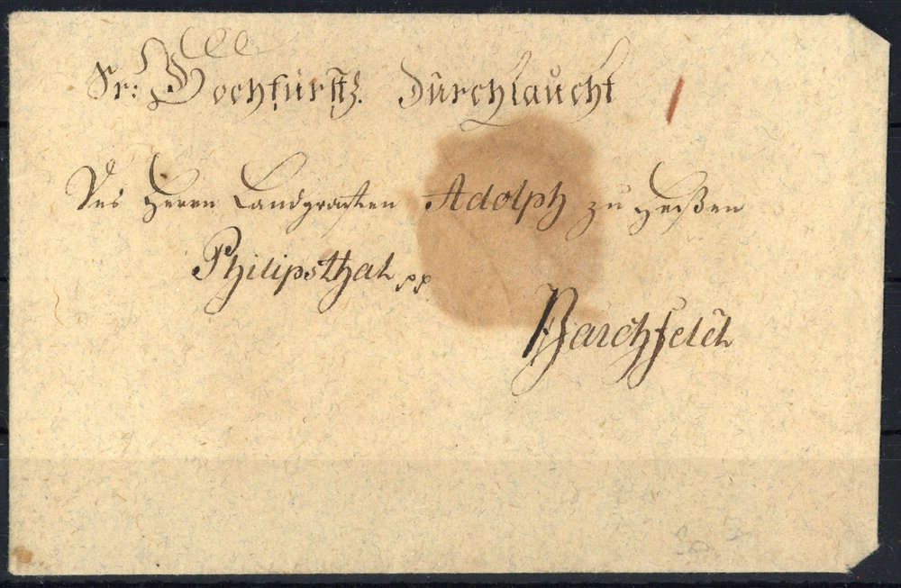 1800, ca., Siegelbrief ohne Absendeort, an Herrn Adolph zu Philipsthal, Barchfeld (Landgraf), Alters- Beförderungsspuren