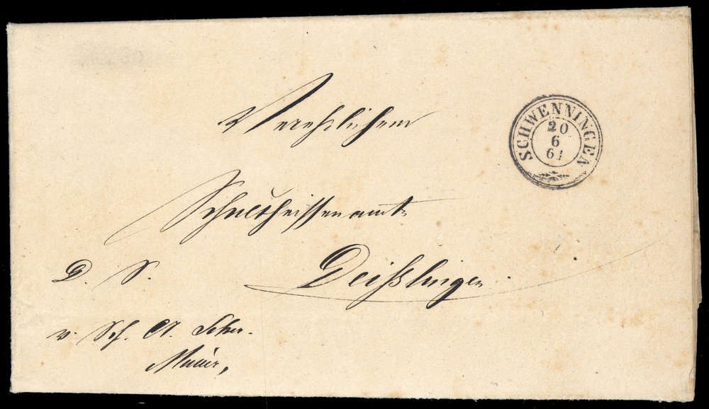 "SCHWENNINGEN 20 6 61" auf Brief nach Deißlingen, Kuvert leichte Alterungsspuren.