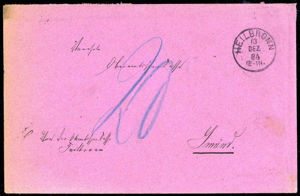 "HEILBRONN 13 DEZ 84 12-1 N.", K1 auf violettem Brief nach Gmünd mit hs. "20", leichte Alterungsspuren