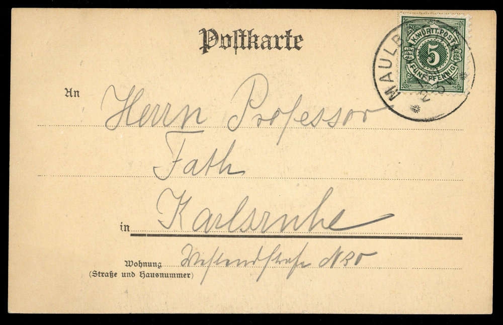 "GRUSS AUS MAULBRONN FAUSTTURM", Farbkarte, gelaufen 1900, Schönwalter Cannstatt