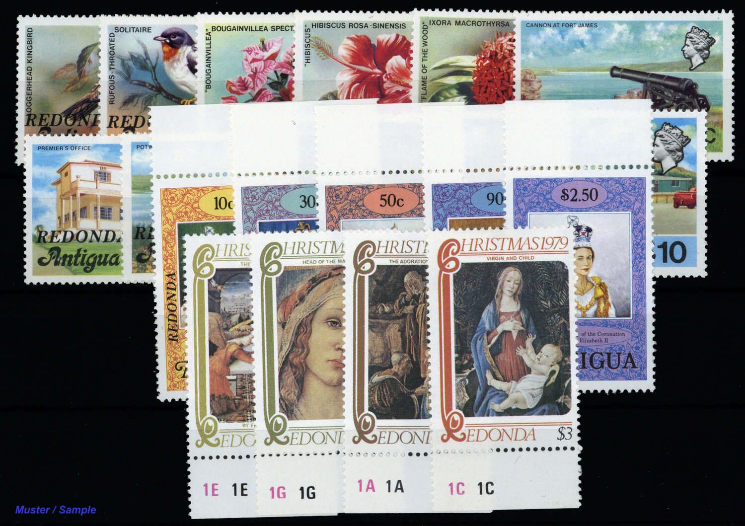REDONDA: 1979, 3 Sätze postfrisch: MiNr.1-11, 12-16 und 35-38 (ME 22.-)