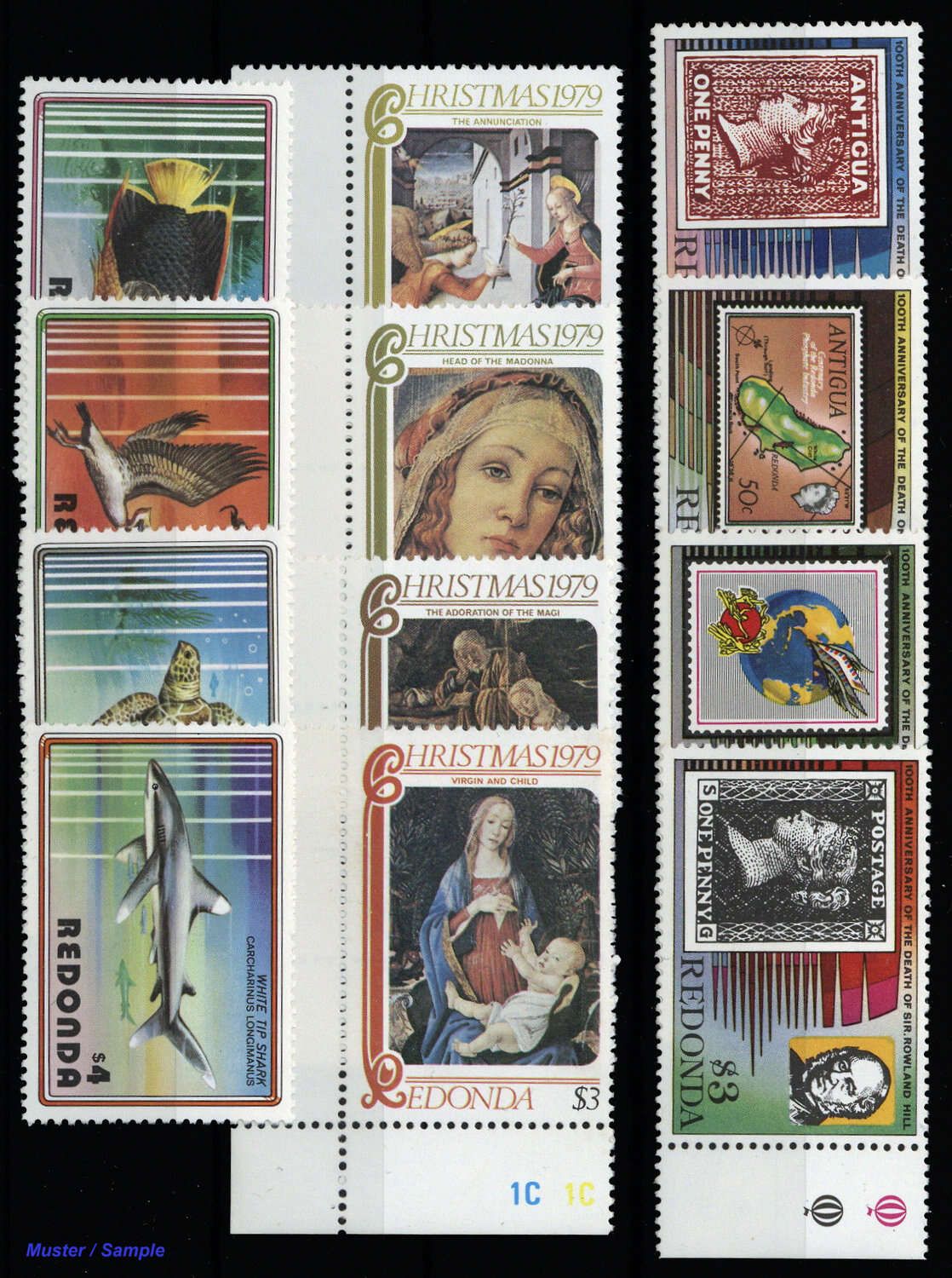 REDONDA: 1979, 3 postfrische Sätze: MiNr.25-28, 35-38 und 40-43