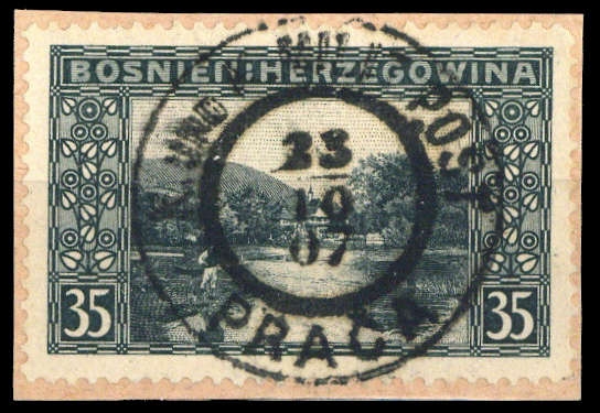"PRACA 23/10 07 KuK MILIT POST", K2 auf 35 H. Seer auf Briefstück