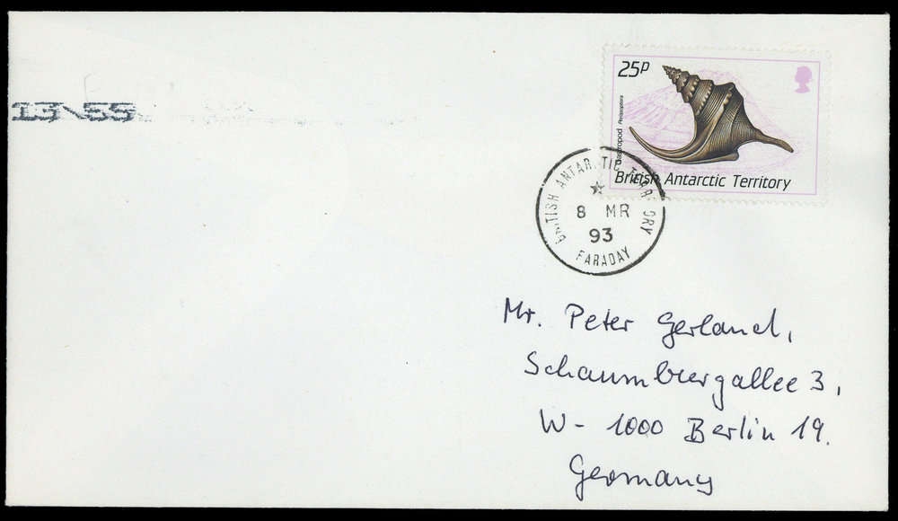 "B. A. T. 8 MR 93 FARADAY", K1 auf 25 P Schnecke Perissoptera, Neben-L1 "13/55", Brief nach Berlin