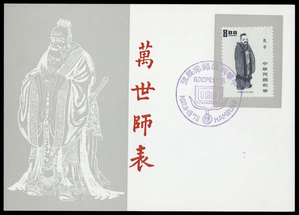 "ROCPEX 78 - 100 - MAR.11-18 78 HAMBURG", viol. SST auf 8 D Konfuzius, auf Schmuckkarte